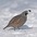 The California Quail is a gray, ground-dwelling bird, more slender than most other quail. It has a light breast with scaled patterning, white streaks along brown sides, and black and gray scaling on the nape of the neck. The female has a tan head with a small feather plume. The male has a bold black face outlined in white, with a brown crown and a pendulous feather plume hanging forward from his forehead.