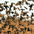 Historically, Brown-headed Cowbirds probably followed herds of bison, walking behind them to take advantage of food kicked up in the bison's wake. Now they follow cattle and other large grazers in much the same way. They almost always forage on the ground, but also lurk about in trees and bushes, mostly watching quietly for nests to parasitize.