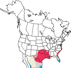 This group, the cardinalids, is made up of medium-sized songbirds that primarily inhabit open areas and woodland edges. The family is tropical in origin and restricted to the Americas. Northern-breeding members generally have strong sexual dimorphism: adult males are brightly colored, while females are drab. They are seedeaters and have powerful, conical bills that can crack seeds. These birds also eat fruit and insects. Most of those that breed in the northern temperate zone are migratory and monogamous. The common names of several species in the Cardinalidae family can be confusing, because some birds that are called buntings or grosbeaks belong to different families. Snow Bunting, McKay’s Bunting, and Rustic Bunting are actually members of the Emberizidae, and Evening Grosbeak belongs to the Fringillidae.
