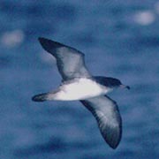 The largest of the shearwaters commonly seen off the Pacific Coast, the Pink-footed Shearwater is the only large, white-bellied shearwater found in our area besides the Buller's Shearwater. Stocky, with broad wings, the Pink-footed Shearwater has a dark, brown-gray head, uniform dark, gray-brown upperparts, and a pink bill and feet. The underside of the wings is white-mottled-with-dark, and the belly is white. On the water, the bird appears mostly brownish-gray with some white on its flanks.