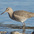 The Willet is a large, chunky shorebird with drab plumage. It is similar in height to a Greater Yellowlegs, but heavier and with a shorter neck. Its bill is long and fairly thick for a shorebird, and its legs are gray. It is mottled gray all over, with heavier barring in breeding plumage than in winter. The rump is white, and most of the tail is barred gray. The wing-linings are dark, resulting in a bold black-and-white wing pattern.