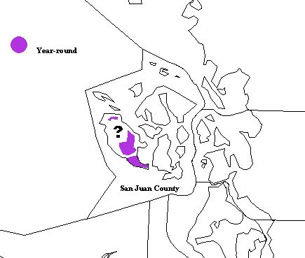 Sky Larks were formerly found in open grasslands on San Juan Island and rarely on Lopez Island (San Juan County). A few are still reported from time to time, although they are most likely no longer nesting there. A Sky Lark was recorded in Sequim (Clallam County) a few winters ago. This bird may have been a visitor from Victoria, or a vagrant from the population in eastern Asia.